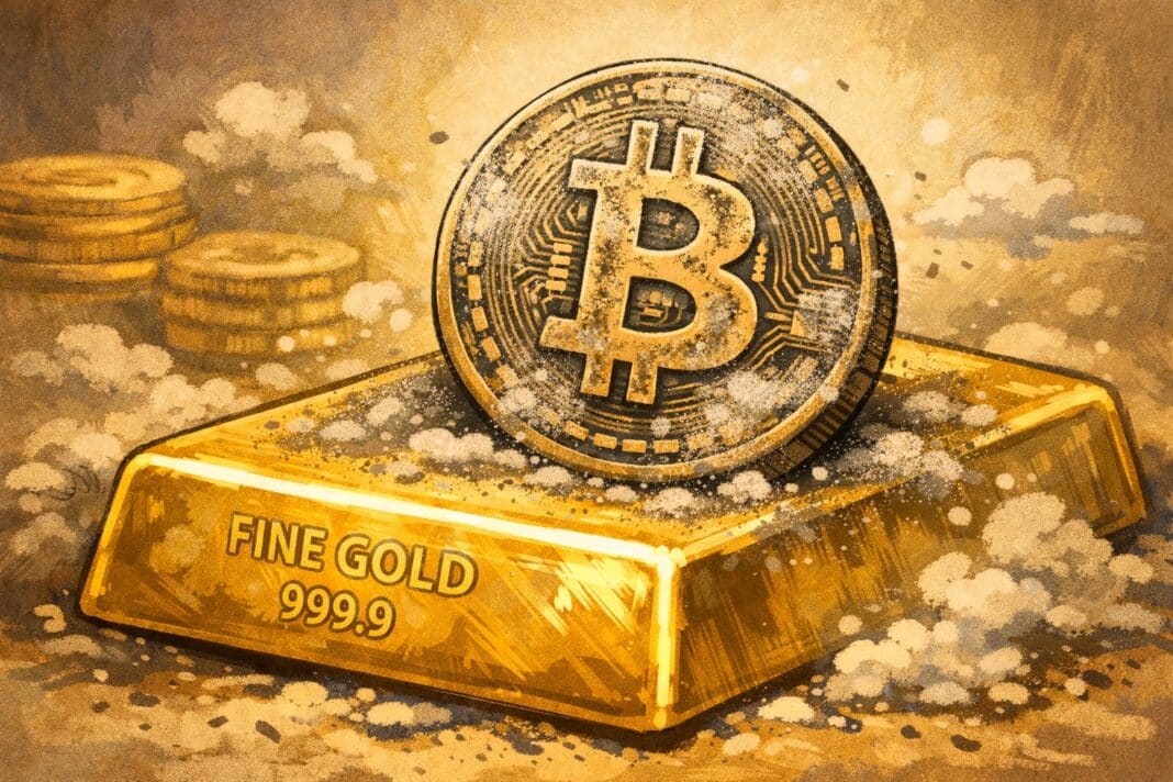 Zlato v roce 2025 posílilo zhruba o 70 procent v dolarovém vyjádření. Bitcoin naopak odepsal kolem šesti procent. Pro kryptoměnu to znamená nepříjemnou zprávu, protože si roky budovala pověst „digitálního zlata“ a bezpečného úložiště hodnoty.