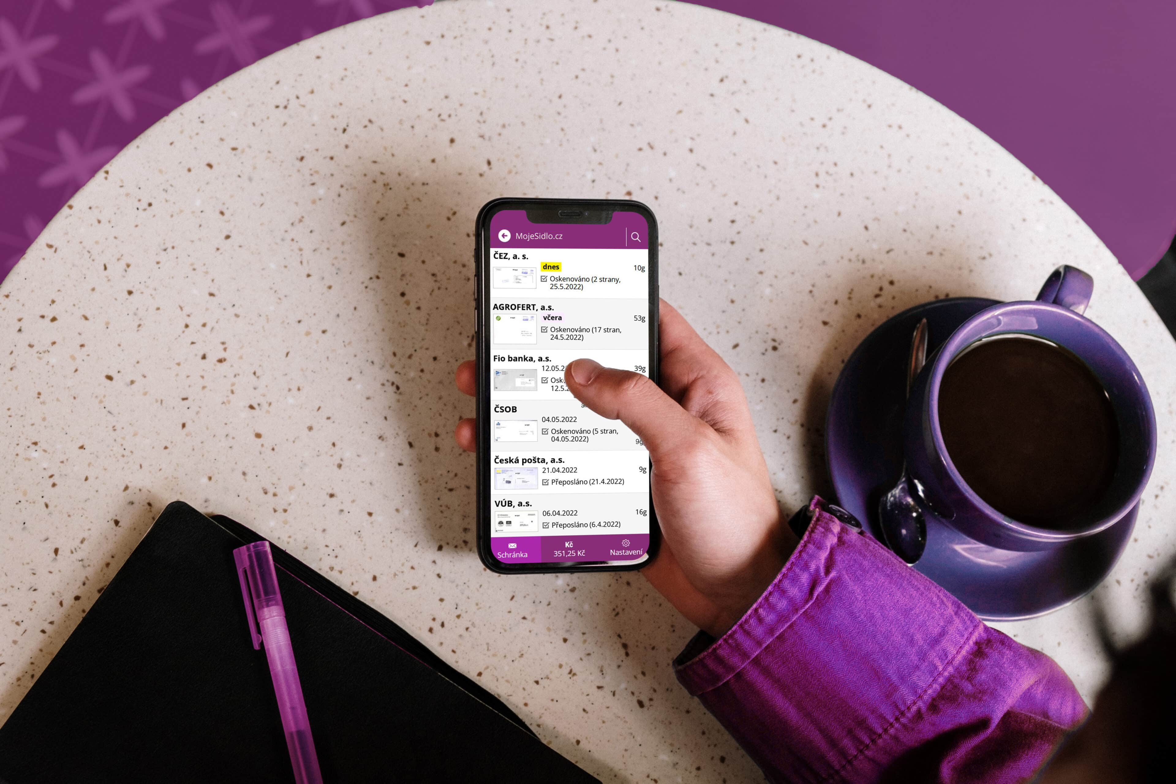 Jedním z velkých benefitů je propracovaná aplikace, kterou jinde nenajdete. V té máte přehled o doručených zásilkách. Samozřejmostí jsou notifikace o přijaté poště a přehled základních informací. Záleží pak už jen na vás, zda si vybrané zásilky necháte přeposlat. Nebo si je můžete nechat naskenovat. Skenování pošty probíhá během pracovní doby do 30 minut. Vždy tak můžete mít přístup k důležitým dokumentům, ať už jste kdekoli.