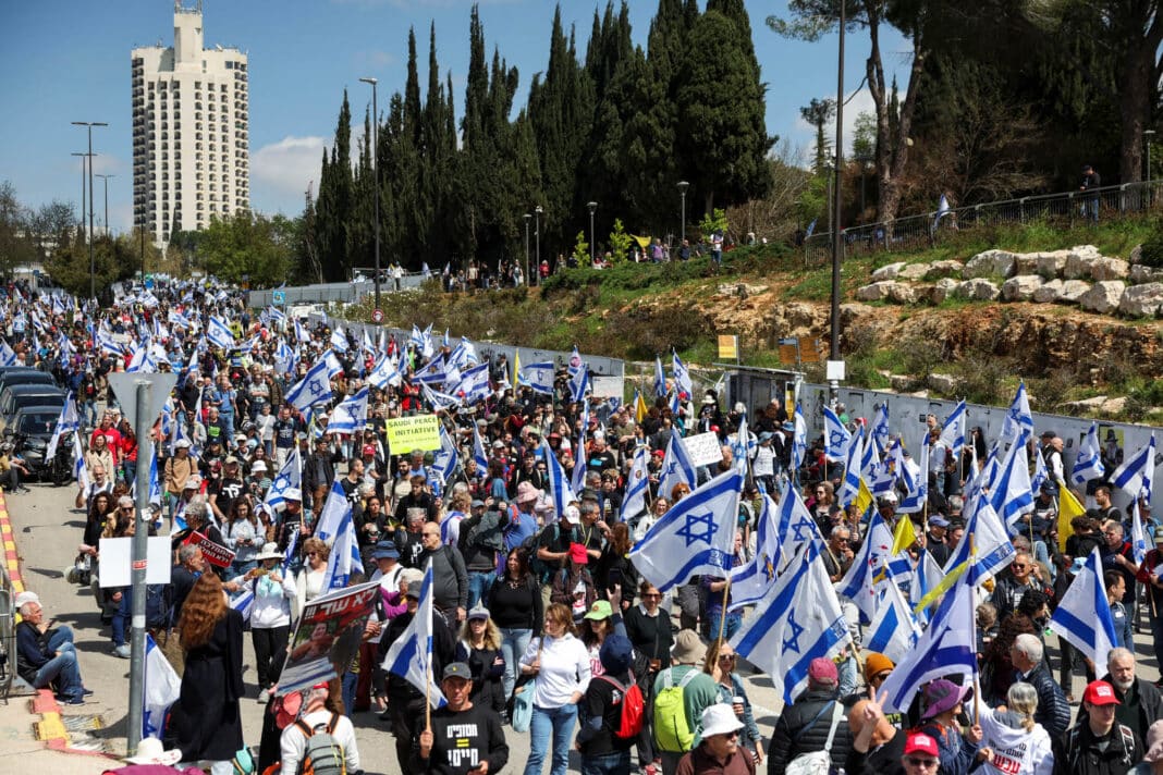 Desetitisíce Izraelců se v uplynulém týdnu zapojily do demonstrací. Hněv nad odvoláním Bara, jehož agentura vyšetřovala obvinění z korupce spojující Katar s Netanjahuovým úřadem, se spojil s obavami o izraelské rukojmí po obnovení konfliktu v Gaze.