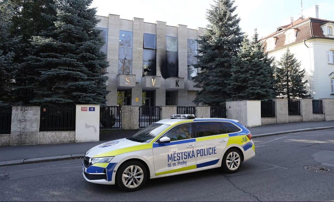 K útoku na Ruský dům v Praze se přihlásil cizinec, policie ho zadržela
