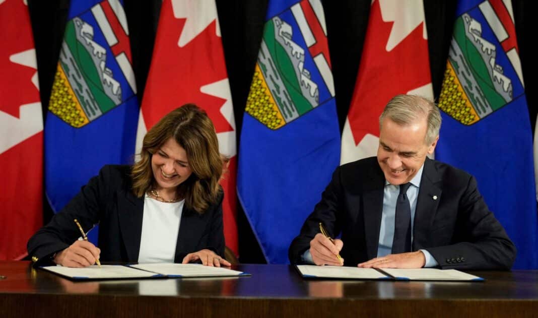 „Jádrem dohody je samozřejmě priorita vybudovat ropovod do Asie,“ řekl ve čtvrtek Carney před podpisem smlouvy po boku konzervativní premiérky Alberty Danielle Smith. Kromě rozšíření vývozu plán zahrnuje celkové zvýšení produkce ropy a zemního plynu v provincii.
