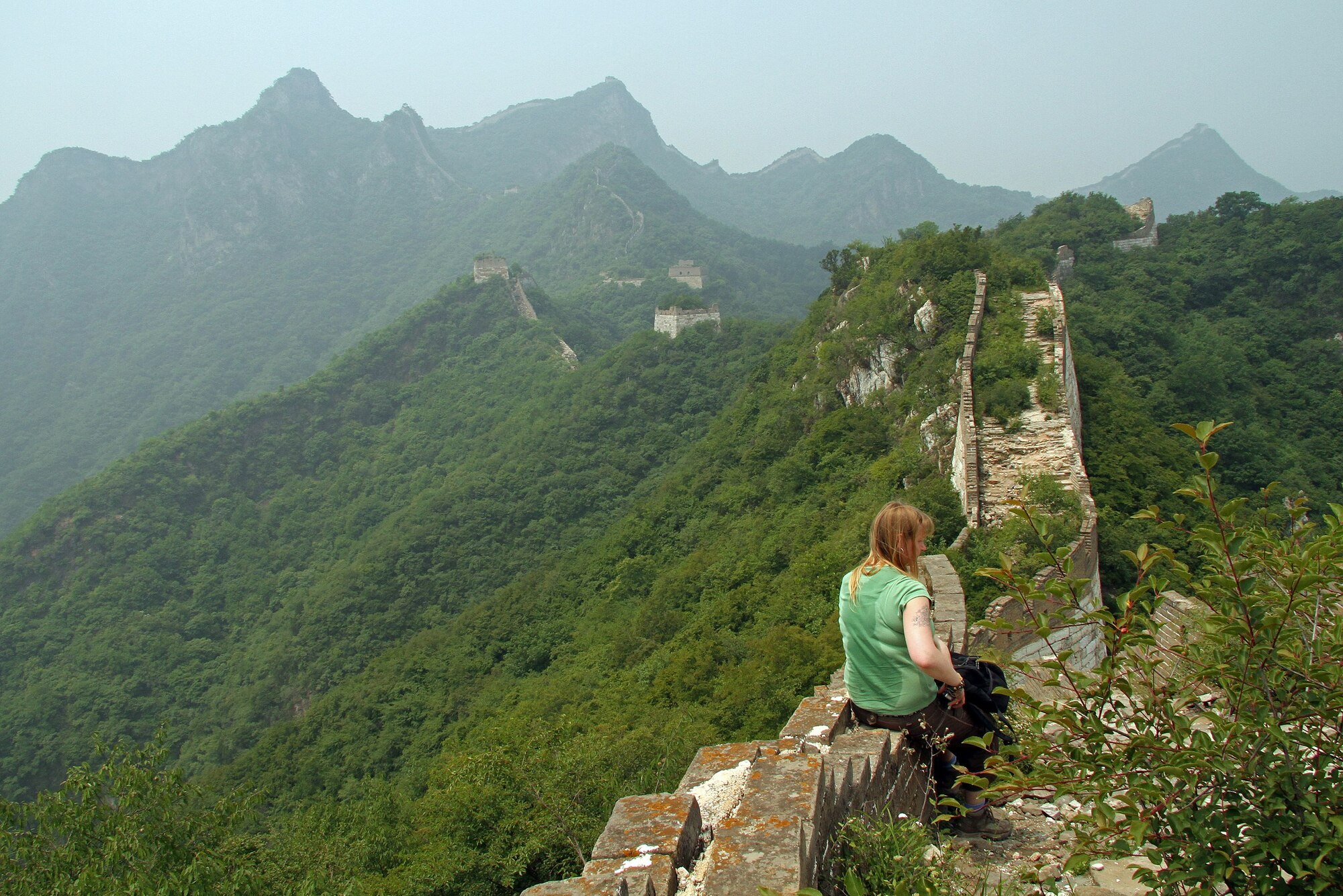 Úsek Jiankou, kterému se také říká divoká zeď, vede po hřebenech zelených hor a z dálky připomíná světlou stuhu na vrcholcích. Nenajdete tu kavárnu ani pokladnu. Kdo sem chce, musí nejdřív šlapat zhruba tři čtvrtě hodiny do kopce, a počítat s tím, že mu nikdo cestu neusnadní.