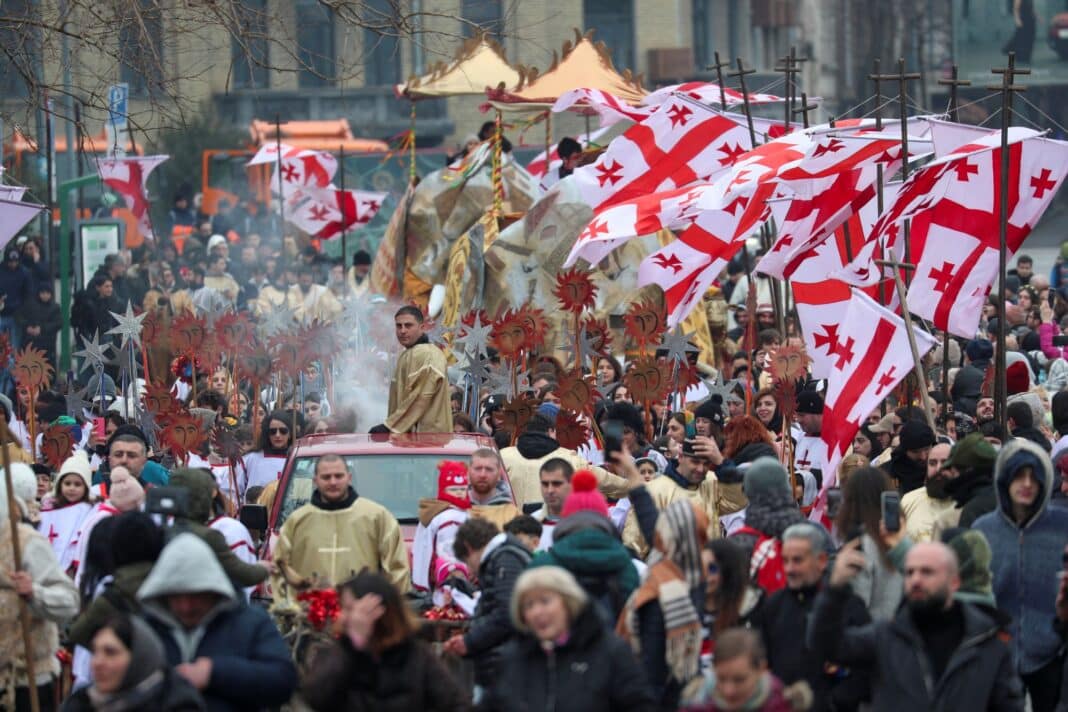 Day 40 of #GeorgiaProtests: protesters gather on Tbilisi's Rustaveli Avenue to mark Orthodox Christmas (January 7) together. People marched to Kashveti Church – opposite the parliament building – from 5 different locations.