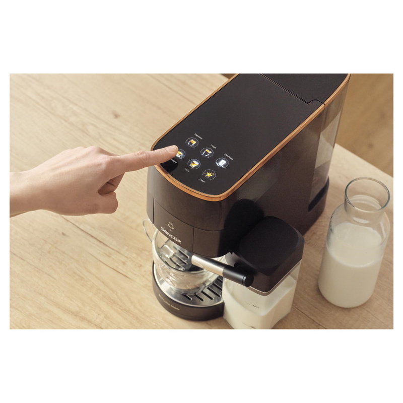 Milujete Espresso, ale nechcete se omezovat jen na jeden typ kapslí? Kávovar Sencor SCC 3000BK (doporučená cena 4 999 Kč) vám umožní vychutnat si Nespresso®* Original, NESCAFÉ®* Dolce Gusto®* i vaši oblíbenou mletou kávu – to vše s jedním přístrojem. Barevný dotykový displej umožňuje volbu nápoje jedním dotykem, zatímco výkonné 19barové čerpadlo a systém Thermoblock zajistí dokonalou extrakci chutí a vůní.